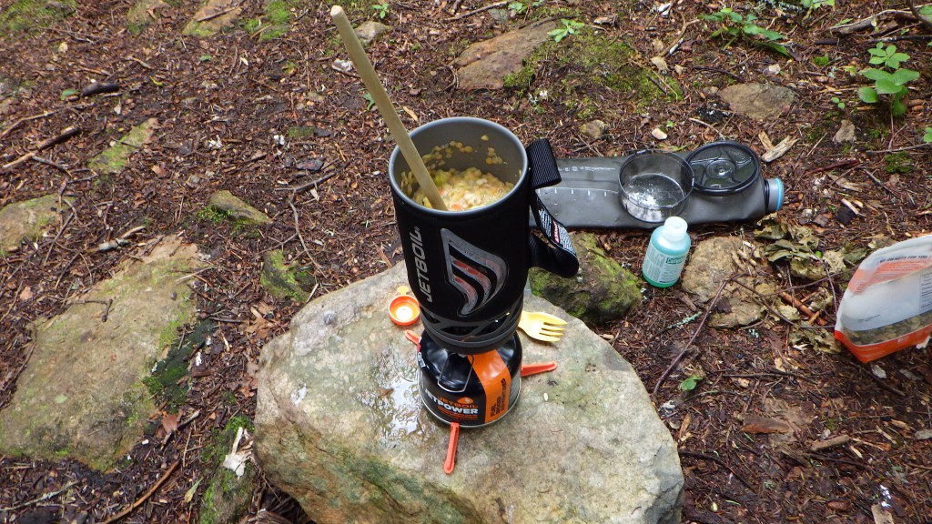 It was actually pretty dire water-wise at this point – I only had about a liter left when I arrived at Carleton summit, and needed to cook two meals and wash my cookware. This left only about a quarter cup for drinking. I found a great little flowing stream, filled up my HydraPak Seeker (3L) and made my way back to camp. With my Katadyn BeFree spout with built in filter, I quickly filtered two liters into my bottles then poured some into my pot to cook lunch.