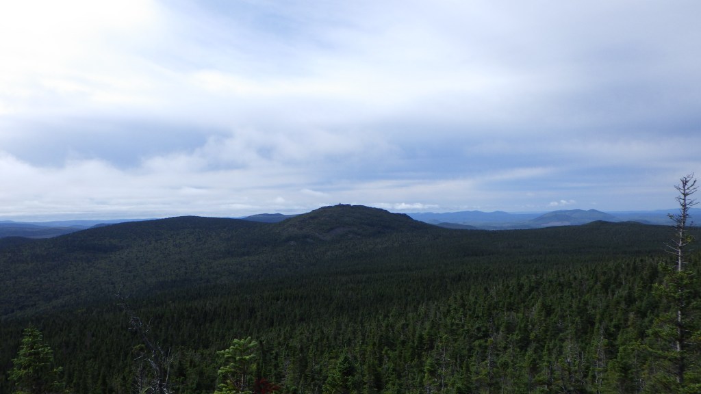 After getting my camp packed up, I was back on the trail for my last day of hiking. I went up the trail to the summit of Carleton first on my way to Head and Sagamook. Great view once again! I continued north down to the Head trail and retraced my steps north. When I arrived at the turnoff for Mount Head (2nd highest peak in New Brunswick at 793m), I set down my pack and went ultralight (just poles and InReach) and set off on the one mile return trip. It was far more than a mile! I found the summit easily, had to bushwhack a bit to the (very faded) sign. Not the best view but could still see the fire cabin on Carleton. Descending was a mess – could not find the trail (it’s not on FATMAP), and ended up going in circles trying to make my way back to my pack!