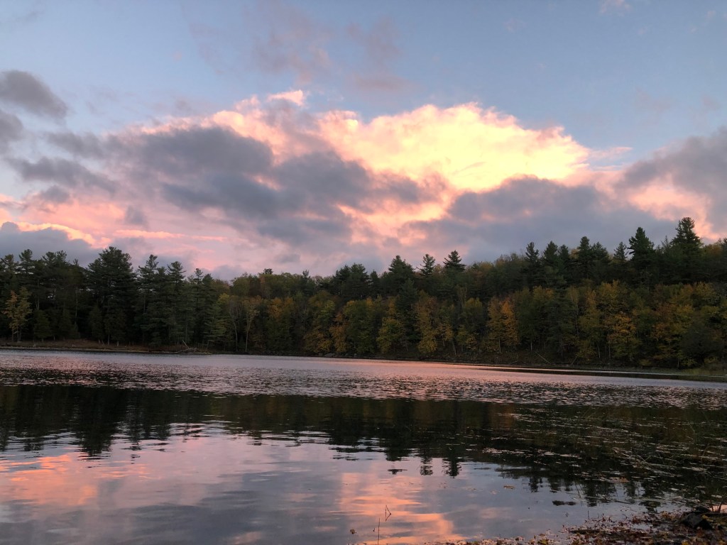 I made it to my campsite (10A) at around 4:30pm, pretty sweet little spot on Hardwood Bay, part of Devil Lake in the northeast corner of the park. I noticed just after arriving some pretty ominous clouds approaching, so without further ado I rapidly set up camp. Turns out it was a false alarm – the sun returned quickly. I only had about an hour before sunset (which was forecasted for just after 6pm) so I quickly made dinner and washed my dishes. Temperature for the evening was a chilly 7-8°C but had a lot of layers that were dry and warm, got into my tent at 7pm. Sleep was fairly inconsistent as per usual for me, I woke up at 10pm and it was super bright outside – I think it was a pretty cloudless night and it was almost a full moon. Still able to get a decent amount of sleep in though.