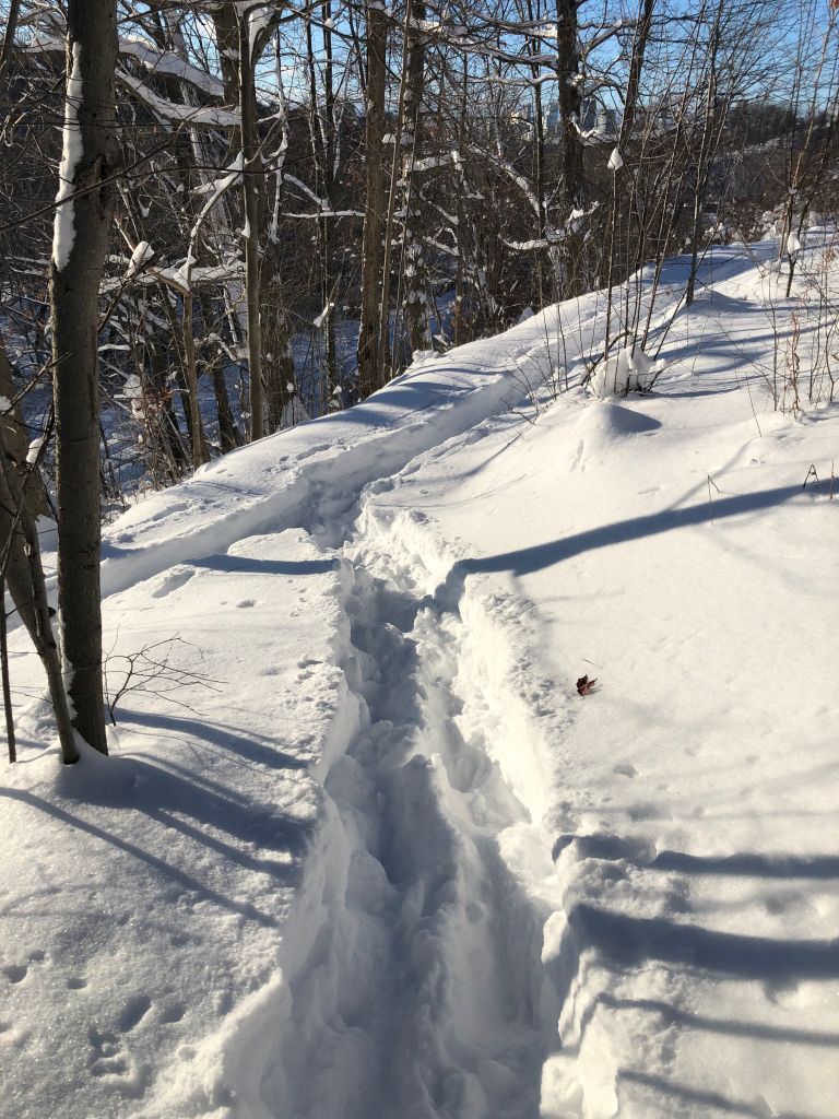 Recently in Toronto, we were walloped by a huge blizzard, which dropped over 40 centimeters of snow on the ground. This was quite a rare sight as heavy snowfall has been largely non-existent in recent years. While this was a huge inconvenience for commuting and getting around (even with winter tires, it was impossible for me to drive without getting stuck the morning of the blizzard), it was a glorious opportunity to break out the snowshoes and put in some solid kilometers before the trails got trodden down too much. Last week, I put in close to 14km in 5 hours on the snowshoes over three days, and had a ton of fun changing things up from my usual training. It really felt like I wasn’t in Toronto anymore! Downside – I got a pretty nasty blister on my heel on the second day, and didn’t manage it properly, so I had to effectively go shoeless for four straight days after. Worth it to take advantage of the fresh pow’!