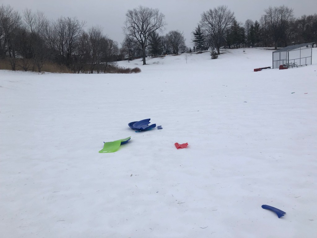 I used to toboggan a lot as a kid 25 years ago. It seems to me that sleds are very poor quality nowadays – my sleds lasted multiple winters, yet it seems many of these broken sleds look fairly new. Plastic becomes quite brittle when it’s cold, so maybe a solid wooden toboggan would be a better choice! Also, I’m fairly certain that a lot of the sleds were overloaded which would expedite breakage. At the hill, I’ve seen multiple people on one single sled, and also adults using them (when they are clearly designed for children).