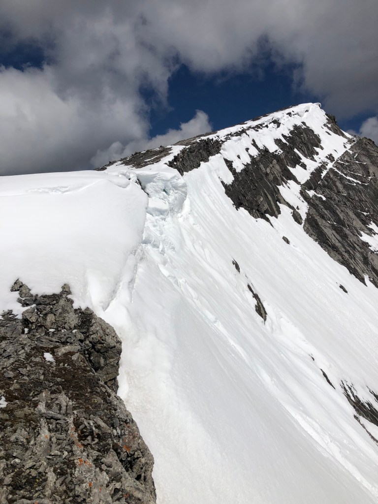 Comparing South (Oregon) and Middle (Alberta) Sisters, I was expecting a slightly more challenging climb up Middle Sister, as South Sister, though higher elevation (3159m) has a well marked trail all the way to the summit, and I did the climb in two days. Middle Sister, on the other hand, has a large chunk of the climb on loose rock and scree, requiring some route finding, and I don’t believe you can camp on the trail, so I think it’s always done in a single day.