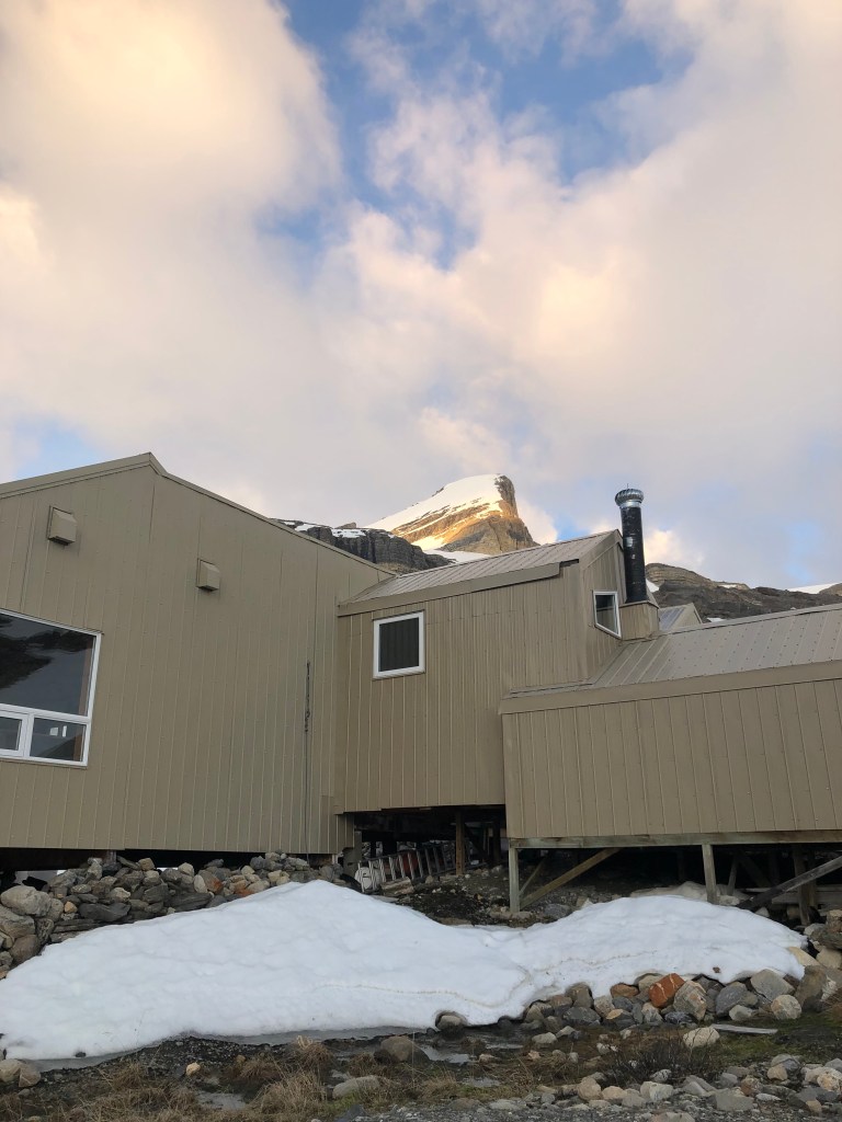 There is no power at the hut, and no running water. We collected water from the nearby stream running off the glacier in large Home Hardware buckets to boil for drinking. Waste of course was to be packed out at the end of our stay (Leave No Trace!), and any grey water (from dishes) was poured into large shafts outside where it goes through appropriate treatment/disposal. This was actually the second iteration of the Bow Hut – the older one, built in 1968, became quite decrepit and was very small, so it was replaced in 1989. The history of the hut was very interesting to read up on! There are three additional huts on the Wapta Glacier – this network serves as a great location to do ski touring and point-to-point glacier travel.