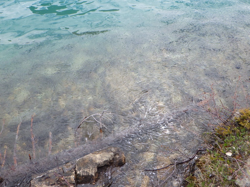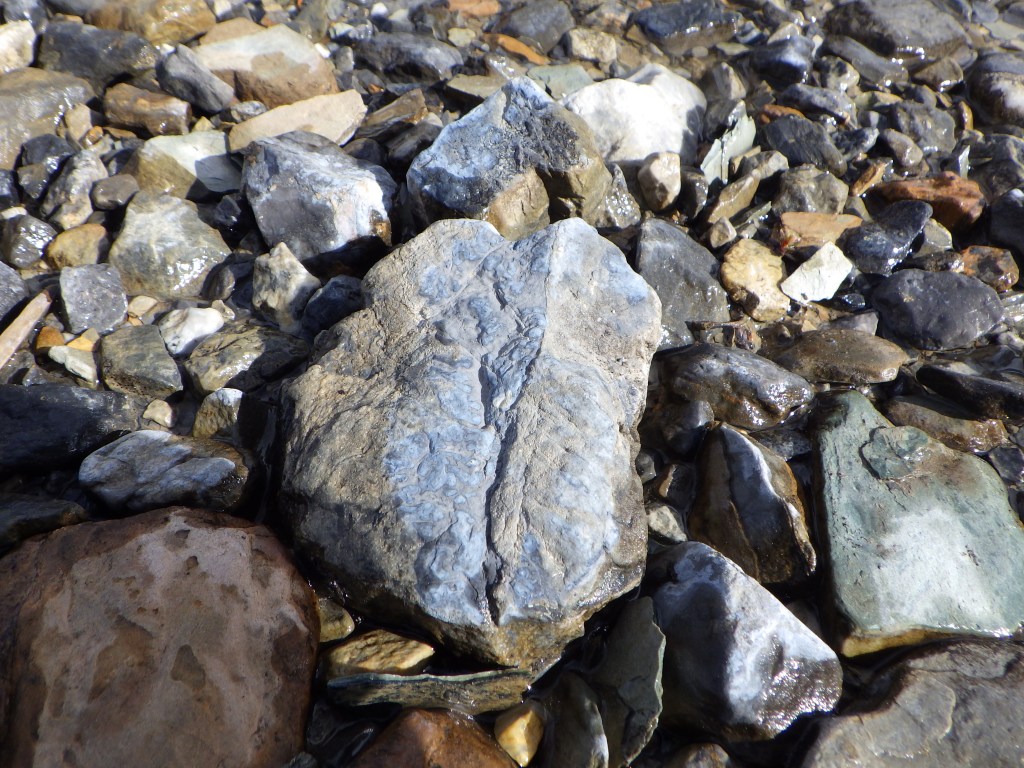 The hike was really enjoyable as the weather was really nice and the views of the mountains were fantastic. The hike started off working around Bow Lake, which was almost completely thawed out, but did contain quite a few small “shards” of ice which provided a delightful jangle as they clanged together. Very cool! We also had to climb over a massive boulder that was conveniently the only way across the river below.