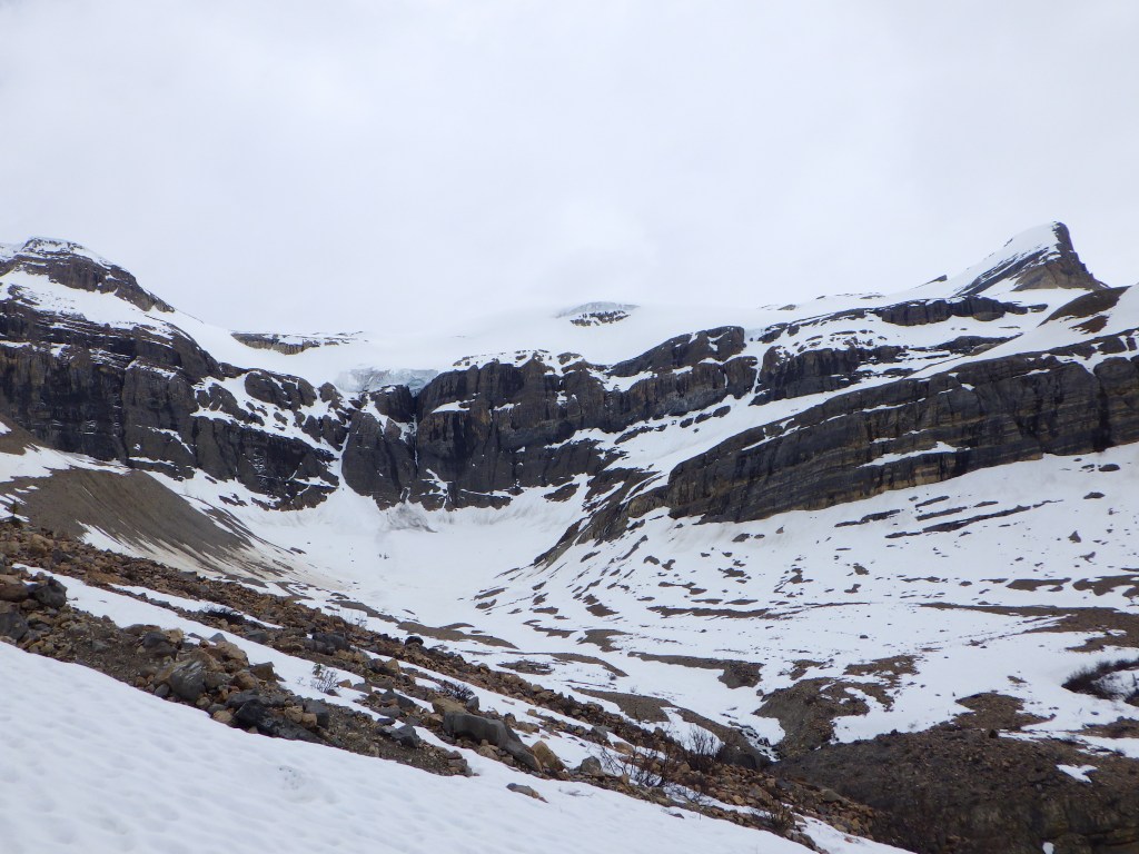 We had quite a bit of snow to contend with as we worked our way up to the glacier. Randy accompanied us for a large chunk of the way but eventually turned around to head back to the bus. As we were still in an area which could be frequented by bears, we took a couple precautions. Three of us (myself, Andrew and Richard) carried bear spray and were spread out among the group, and Richard occasionally yelled out “Hey-yo” to warn the bears of our presence. We learned that being in a group is very safe in bear country as bears are more likely to attack lone hikers.