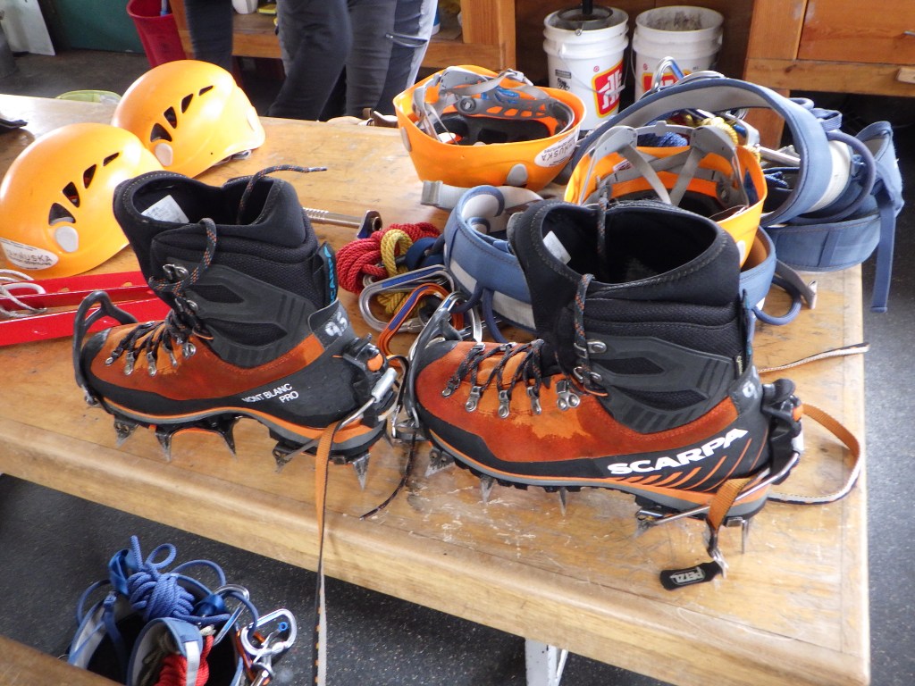After introductions, going through some hazards and logistical details (as well as being provided with a massive bag of snacks each for the week, as well as our lunch for the day), we packed our things for the week and into the van. I rented a pair of mountaineering boots, as I had not bought a pair yet. Andrew, Karly and Luca had their own pair, and Janet opted to wear her regular hiking boots. The boots, despite being quite stiff, were very comfy! Getting sized was interesting as the boots were a full size up on my regular size.