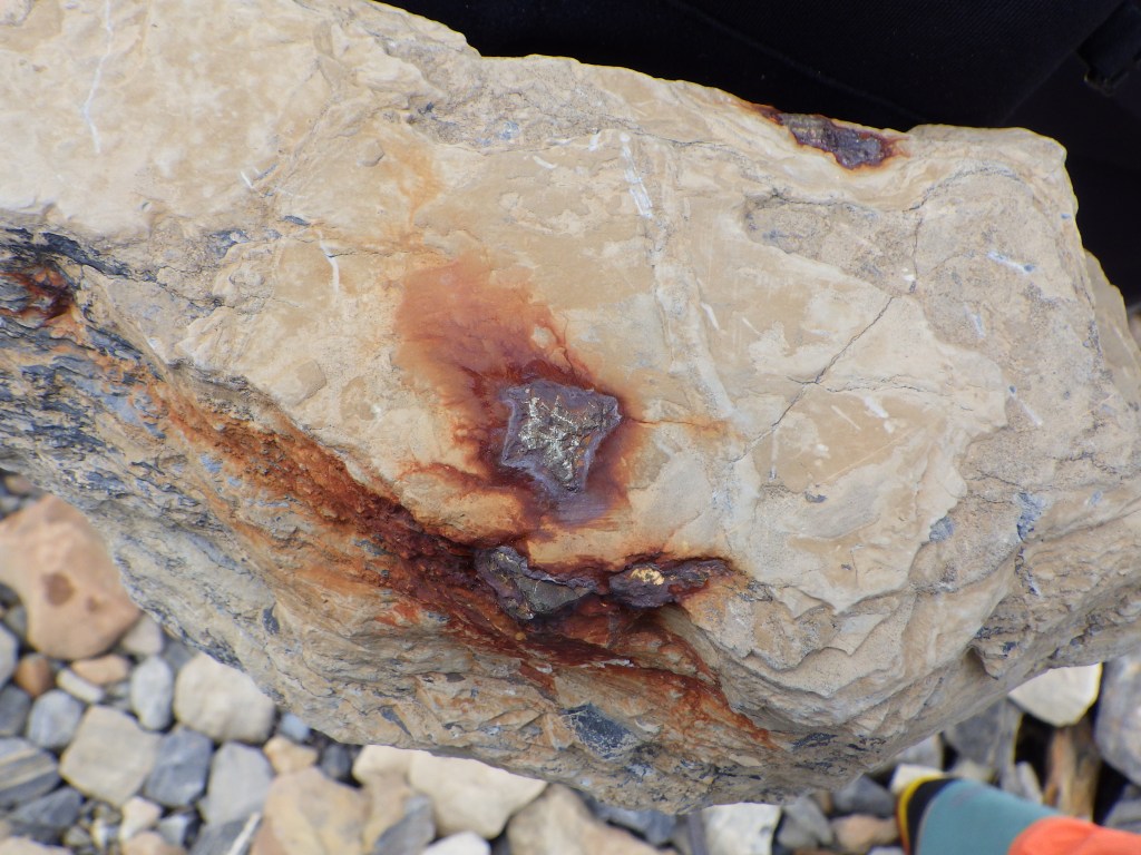 Richard was an incredible resource of knowledge of the geology and features of the mountains. He pointed holes in the snow with rocks at the bottom, and explained that this was not caused by the rocks falling through the snow, but rather a melting phenomenon where there is localized heat from the dark rocks which melts the surrounding snow. In another installment of “Rocks with Richard” he pointed out a few interesting rocks and their colorations which was related to the minerals that the rocks contained. As a materials science nerd, this was of course right up my alley. These included iron-containing minerals (rust-colored Fe3+ or hematite, and the darker colored mixed Fe2+/Fe3+ or magnetite). There were some blue/green hues on some of the rocks as well, which was a definitive sign of the presence of copper compounds with sulfur – ever wondered why the Statue of Liberty is green?