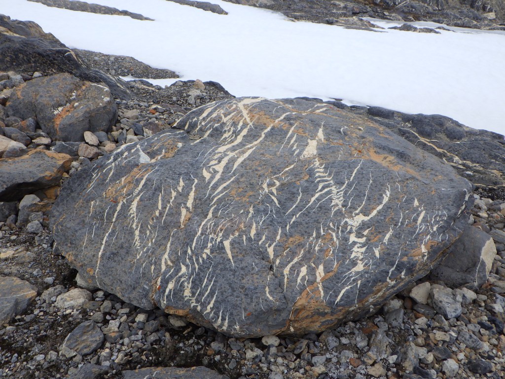 Richard shared that the glacier had receded quite a bit since his last visit, and the area looked quite a bit different as a result. In the latest installment of “Rocks with Richard” he pointed out interesting scratching patterns on rocks as we hiked up. These scratches were very linear and consistently directed, and sometimes several directions were observed. These scratches were the result of glacier movement – a glacier is almost like a body of water in that it flows (albeit very slowly) over time. These scratches indicate the direction of the glacier flow – as it moves, rocks are transported along and abrade against other rocks, causing scratches. Very neat! Richard also pointed out various features of mountains including crevasses, bergschrunds (effectively crevasses near the top of glaciers) as well as some of the flora of the mountain. We also saw a few small avalanches from far away on nearby peaks.