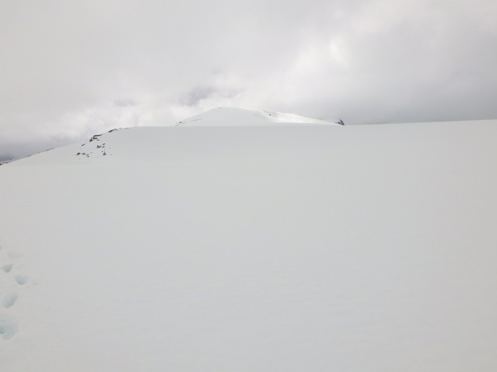 On our return we encountered signs of crevasses, and spent quite a lot of time just below the Onion learning how to make snow anchors using both the ice axe as well as snow stakes (which were developed in New Zealand). It’s important to dig quite a bit to get to the compacted, dense (summer) snow layers (winter snow tends to not be as structurally sound), and also rig the rope such that it’s centered on the axe in terms of its surface area, in order to create the most reliable anchor possible.