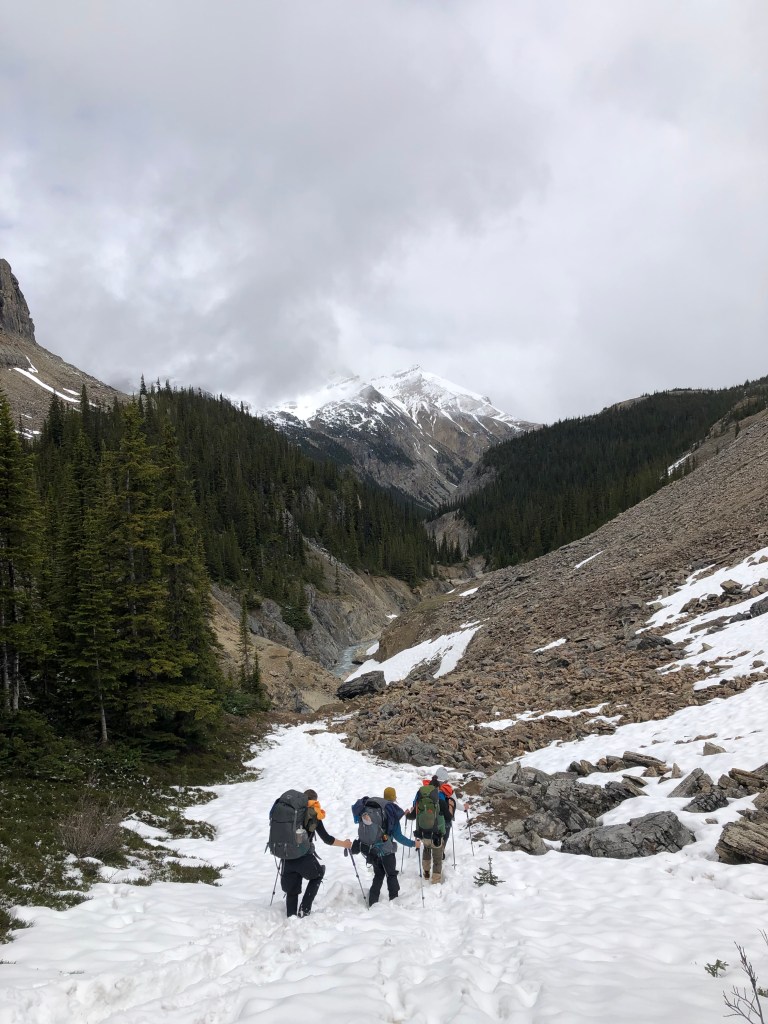 We had gotten over 5cm of snow the previous afternoon/night which was pretty wild considering it was June and back in Toronto it was 40 Celsius. This meant that we likely had a bit of a slower hike down due to the snow, however luckily Grant’s group left a couple hours before us, and they broke the trail, so it wasn’t too bad. The hike down was pretty good, much faster than on the way up and the views once again did not disappoint.