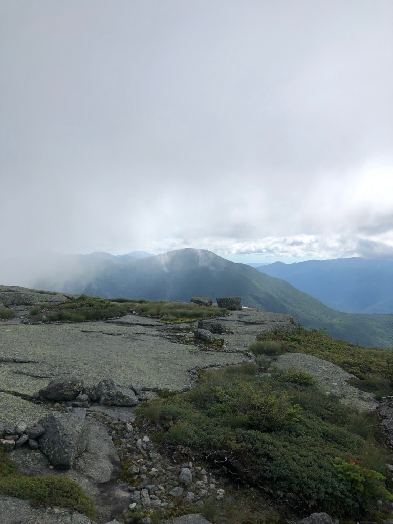 After collecting water at the Gray trailhead (Lake Tear of the Clouds, located here, is the highest pond in NY and the source of the Hudson River!), I started up and was confronted with some tricky climbing sections of rock, which were slick in places and required some scrambling. This was made a bit harder by the fact I had my pack! Gray only recently got a (herd) trail and used to be a bushwhack. I was able to make my way up and reached the summit at around 7:40am. It wasn’t a great view as Gray’s summit is covered in trees and it was quite cloudy, but it was a nice place for hot oatmeal. I usually cook at my site before packing up and hiking, but I kind of liked hiking out and eating on the trail, especially on the top of a mountain. I’ll have to do this more often. After about 50 mins, I made my way down and continued up the trail towards the next two peaks on my itinerary.