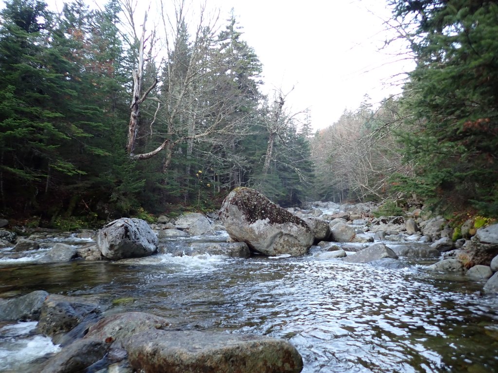 Just before 5pm I set off, and with a bit of disappointment turned down the Wolfjaw trail, “orphaning” Lower Wolfjaw. Lower Wolfjaw summit was only half a mile away, but I knew it would be at least 40 mins up to the top – the elevation gain makes it take a lot longer than what you’d expect. The descent was fairly steep and I had to be mindful of my footing, but got down the tricky sections safely before getting onto a more even footpath. I forgot to mention that most of these trails had streams of water running directly over them, making for some very dicey spots where I had no choice but to tread on damp rock. Definitely paid to take my time and be methodical about my attack plan! I ended up using a lot of tree branches and roots for extra support, and also had to slide on my butt a few times. The poles got tossed down quite a bit as well when I needed both hands.