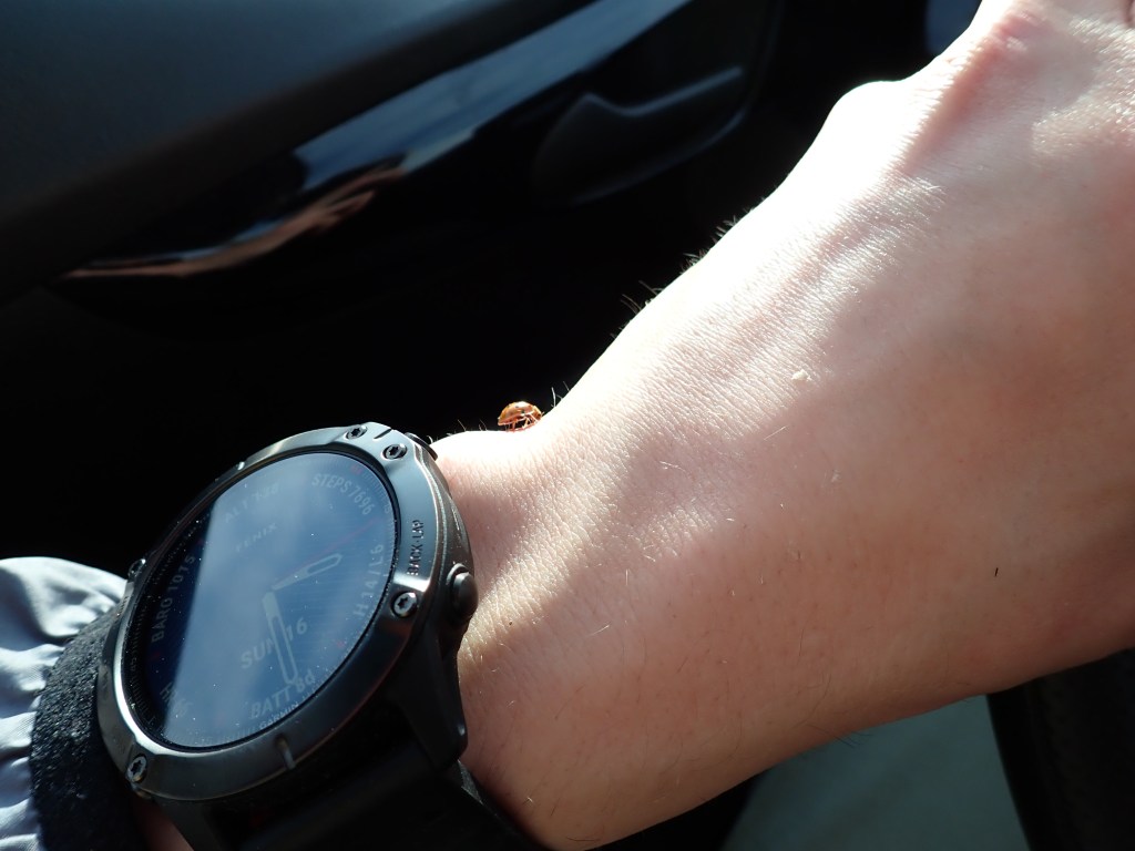 The next day was another early start – I wanted to be on the trail early to get home as soon as possible. I packed everything up by the light of my headlamp and was off just after sunrise. It was quick easy hike back to the car in a neat 75 mins including a short water break. I encountered a lot of outbound hikers on the way, including a pair of girls who were planning to do Basin, Saddleback, and Haystack, but in the opposite direction to what I did. They were very thankful when I recommended they go up the Saddleback cliffs rather than down! After returning to the parking lot, I moved my car so that a group of seniors from Vermont could park – the lot was completely full! I was soon on the road at around 8:45am – smooth sailing all the way home with a quick gas/food stop at the ON Route in Ingleside. No traffic until I got to Whitby which was a nice change – definitely will try and avoid long weekends in the future! Also was accompanied by a ladybug on the drive home, possibly immigrating north?