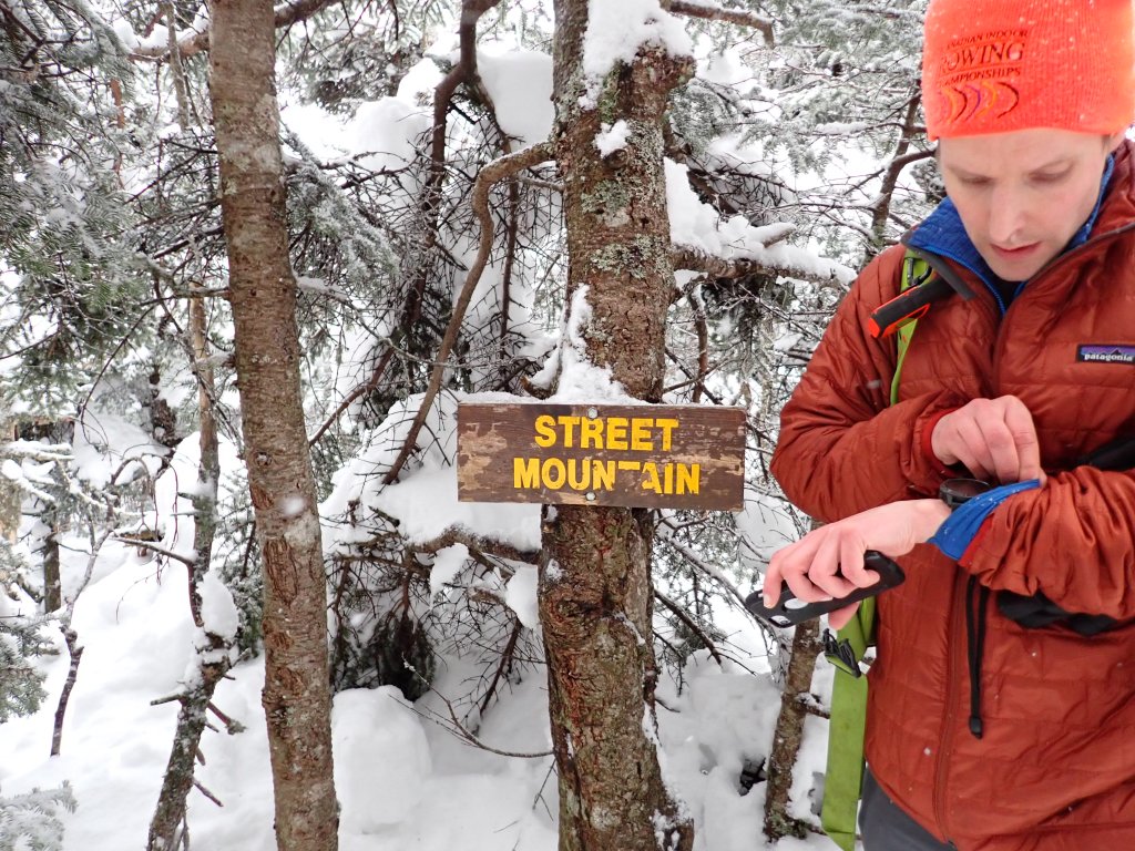Eventually I reached the junction where the trail split between a short stretch leading to Nye and a longer section leading to Street. Here I met a couple close to my age from Ithaca who had just done Street and were headed up Nye, so I joined them. Super friendly people! We got some photos at a lookout just below the summit of Nye, great views of the MacIntyres! After descending back to the junction, I carried on up Street. Fairly straightforward from here. I met another couple at the top of Street who were in spikes, but I wasn’t really up for telling them they should use snowshoes as they were very friendly as well. I blew past them on the way down, which hopefully reinforced the fact that snowshoes are optimal!