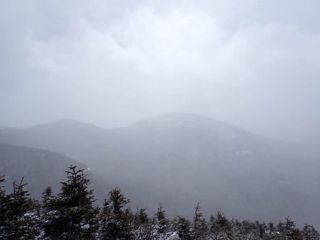 Upon arrival, I quickly donned my puffy jacket as it was quite windy and cold. My phone battery was nearly depleted as well, despite being in a chest pocket! I plugged it in to my power bank and luckily my digital camera was still functional so I was able to get some photos. I hunkered down and had a wrap – this truly was the most extreme hiking conditions I had been exposed to, aside from perhaps Colden this past November. After quickly refueling, I began my descent and was very glad to be back in the shelter of the trees. I met a few people on my way down, including a fellow Canadian named Guillaume, from Ottawa.
