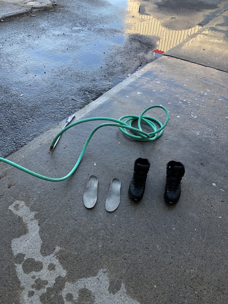 My heels, despite putting on moleskin and wearing liner socks, were STILL blistered, which was quite irritating, so I was glad to get out of my boots and into my camp booties. I quickly set up my bivy and sleeping setup – apparently it is against the rules to set up a tent in a bivy (as it takes up a lot of space) but a bivy has such a small footprint so I felt it was reasonable. It started to rain a short time after arriving back at camp, but I was happy to have shelter and was able to get my stove going to make a hot dinner of red lentils, dried vegetables, and orzo pasta – an old favorite. I went to bed at around 8:30pm.