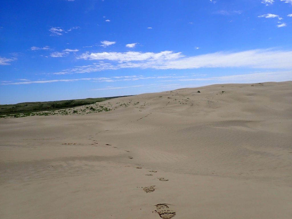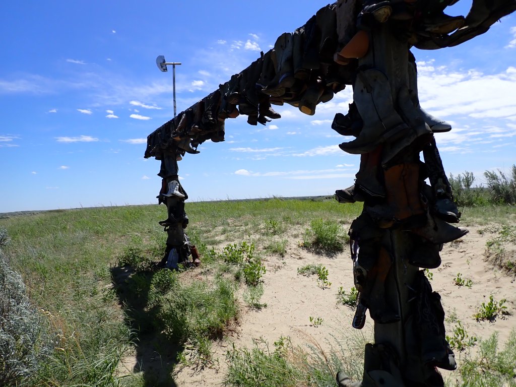 The Sand Hills constitute about 1900 square kilometers of active sand dunes, and it really felt like I was in a desert and not in Canada! They were formed during the last ice age over 12000 years ago and stand at most 15 meters high. The sand was very fine, and is known as rock flour, a typical result of glacial erosion. Near the entrance there was a structure with dozens of boots hanging – the Great Sand Hills Hanging Cowboy Boots! The boots are a memorial to John Both, who served as a steward of the Sand Hills and surrounding area for much of his life.