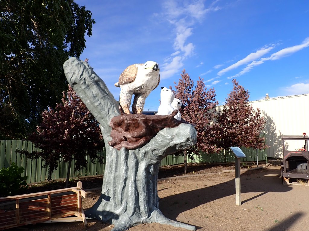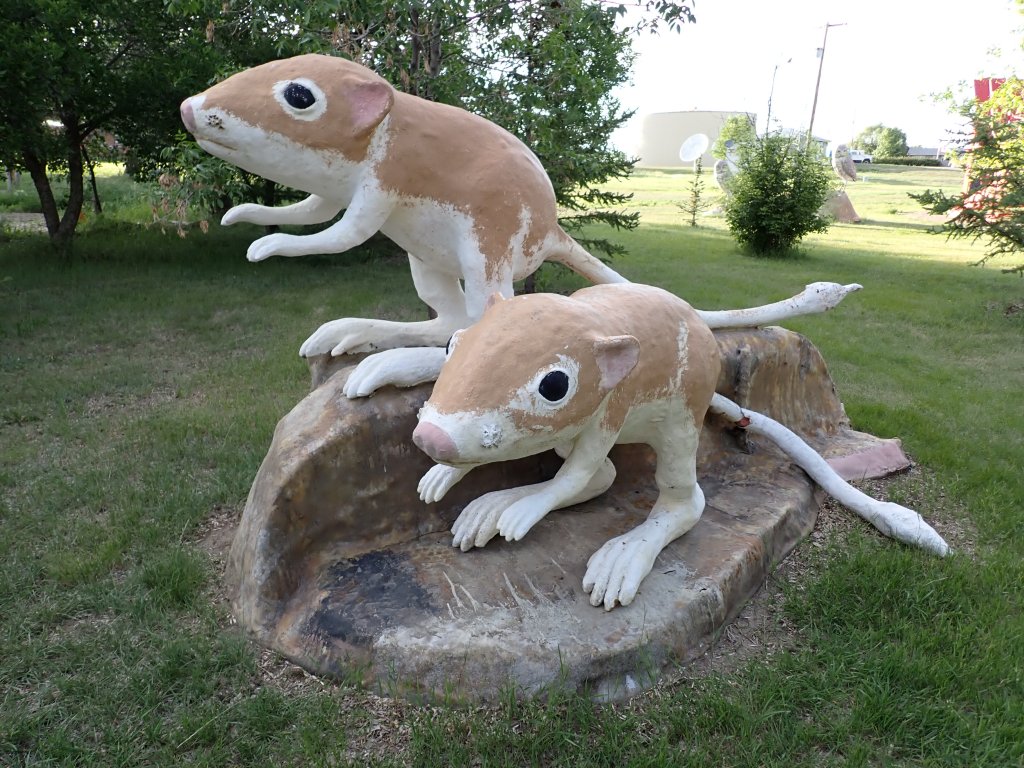 I returned to Leader and grabbed gas before checking in at Motel 51. I made use of the squeegee to clean my windshield and windows a bit before paying! I grabbed a protein bar and my water bottle and took a walk around the town. I took the Larger than Life Self-Guided Wildlife Sculpture Audio Tour, which brings the listener around town , stopping at a handful of wildlife sculptures which were created by Ralph Berg and Grant McLaughlin in the between 1992 and 2009. Fairly brief audio portions, but interesting learning about some of the native species. I started at the one closest to the motel (Red Headed Woodpecker) and followed the route from there, finishing at the walking tour starting point which featured the tourist booth (a repurposed train car) as well as a massive Muskoka chair. Pretty nice walk and very informative tour. The tour route was a bit inaccurate though – the Sturgeon sculpture was actually located at 1st St W, across the street from Canada Post, and the Burrowing Owl (my favorite) sculpture was by the Tourist booth rather than near the hospital.