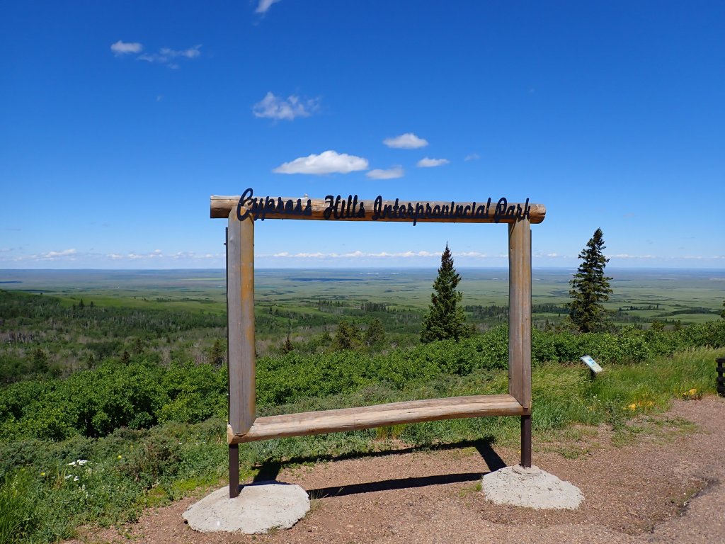 My next stop was Cypress Hills, where the Saskatchewan high point is located. I had a campsite booked in the Center Block (Terrace, Site T73) in the Saskatchewan side of the interprovincial park (part of it lies in Alberta) but did not have my park pass yet (it requires a license plate number, which I had to wait until I had my actual vehicle). I guess I could have paid for my pass after getting the rental, but no matter – I planned to depart Leader and arrive at the park office right when it opened to maximize my time exploring that day. The office opens at 11am, so I left at 9:30am, giving me plenty of time to relax in the morning and take my time heading over.