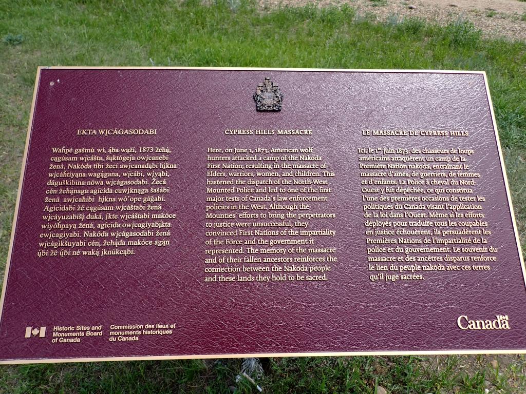 Fort Walsh is a National Historic Site of Canada and consists of a decommissioned fort built by its namesake, James Morrow Walsh, that was built in 1875 to help protect the border with the US and target the illegal whiskey trade. It came about not long after the Cypress Hills Massacre in June 1873, in which a group of Assiniboine (First Nations) natives of the land were attacked by a group consisting of American wolf and bison hunters, Canadian and American whiskey traders, and Métis cargo haulers over allegations of the Assiniboine stealing horses. Tragically, over 13 of the Assiniboine were killed in the confrontation. This event catalyzed the development of the North-West Mounted Police (NWMP), who ultimately took up residence at Fort Walsh to help keep the peace and pursue justice against the perpetrators of the massacre.