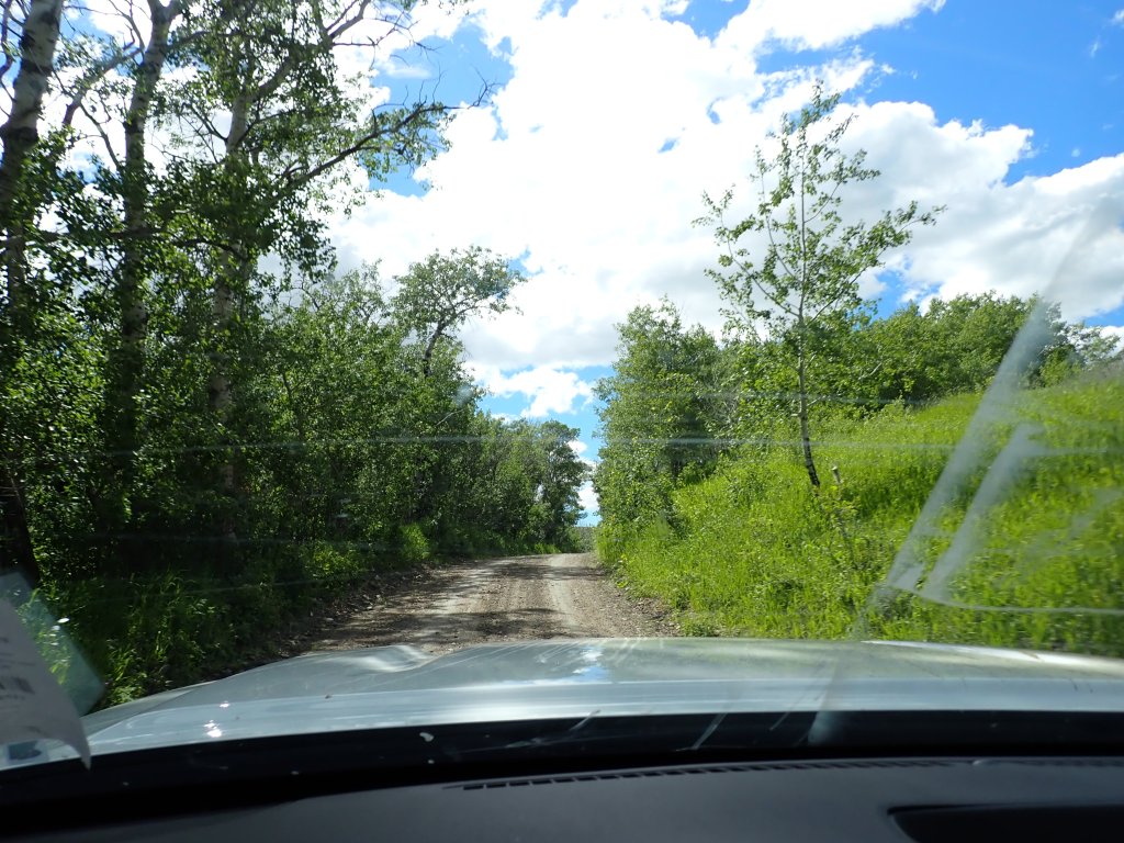 My legs got pretty scratched up along the way (fortunately no poison ivy!), and the high point was even less exciting than the Saskatchewan high point. After walking a bit to approximately line myself up with the GPS coordinates marking the high point at 1468m, I took off through the field and reconnected with the gravel road. All in, about an hour detour.