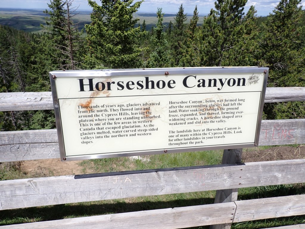 I stopped by the visitor center and, with some feedback from the friendly staff member at the desk, decided to modify my hike slightly. I would still take the Horseshoe Canyon trail on my return (descending) to my car, but instead take the slightly more difficult Mitchell Creek trail out (ascending). In addition, I realized that the Cypress Hills high point (about 76m higher than the Saskatchewan high point) was just a short 1 mile (one-way) detour off this route, so I decided to add that on to my hike for the hell of it.