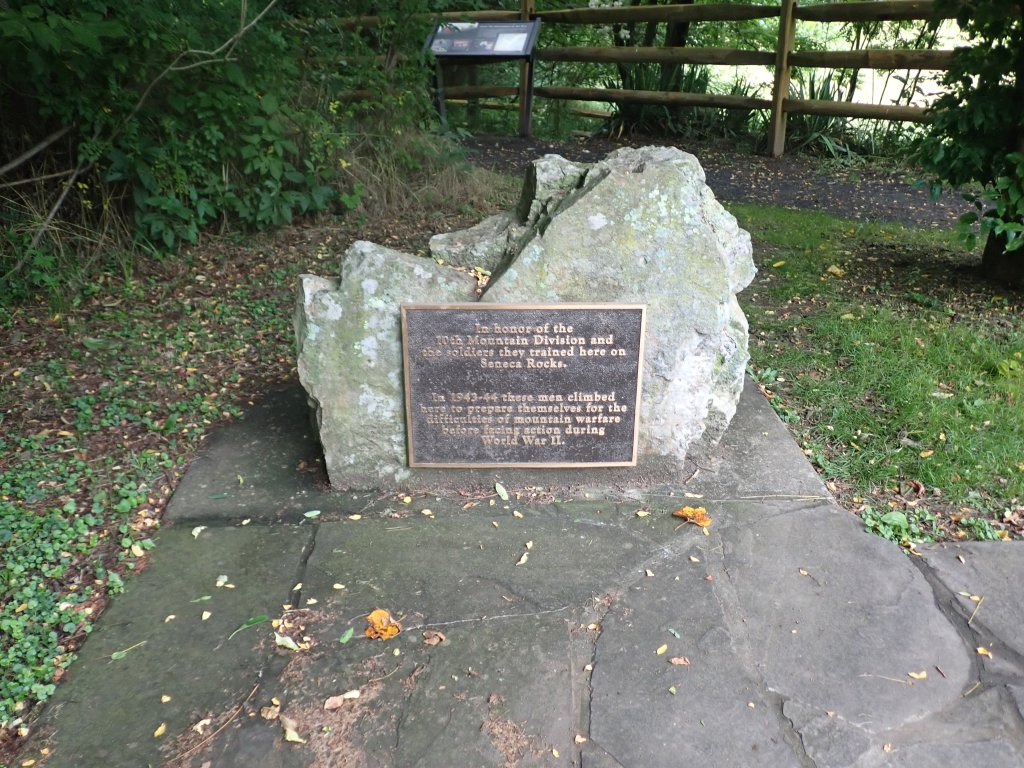 We were planning to do another 3-ish hour hike after finishing up our Spruce Knob hike, but as we had modified our schedule (effectively we had hiked an average of 1km/h across our three high points, including driving, eating and sleeping!) we were pretty tired and decided to go a bit easier, and drive partway back to Toronto, staying overnight in Pittsburgh. Before that though, we made sure to drop by the Seneca Rocks and check out the visitor center. Really interesting learning about the rocks and their climbing history – apparently the 10th Mountain Division of the US Army trained here in assault climbing before fighting in World War II in the Apennines in Italy! We even saw a couple climbers on the top of the rocks – hopefully they didn’t get sidetracked too badly from the rain which fell shortly afterward. There are over 375 mapped routes up the rocks and I’d love to climb here someday.
