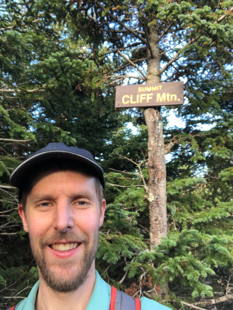 These cliffs are known for being a bit scary, but having done some alpine rock out west earlier in August (spoiler – another blog post coming soon that’s been on the back burner!) it wasn’t too bad. The rock was granite, which offered good grip for both my feet as well as my hands, though it was a lot more weathered than the rock out west! There were sections that were slick so I took special care there. Once clearing the cliffs, it was about a ten minute flat-ish hike past a false summit and along the summit ridge to the proper summit (reaching about an hour after starting through the swamp), marking my 32nd ADK High Peak! It really shouldn’t be on the 46 list (it’s lower than 4000 feet, but was recorded as being higher when the list was first established) – otherwise it was a fun hike!