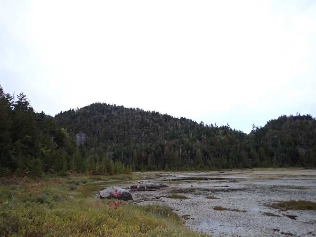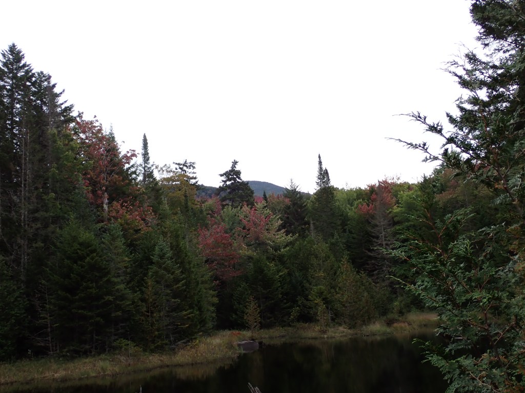 My route would take me south and east down the East River trail, where I would hit Opalescent Road, an abandoned logging road, which would link me up with the Allen Mountain trail, which starts a bit south of the Upper Works parking lot. The East River trail was quite pleasant, but it started with a decent down grade (made for a bit of uphill hiking at the end of the day) and featured a ton of mud. Luckily, plenty of places to fill water! My approach this weekend would be to stop briefly at every flowing water source and drink about 1.5 cups of water, and refill, in order to stay reasonably hydrated. Opalescent Road was flatter, but was a very short stretch, including crossing a stream, and before long I was on the actual Allen Mountain trail.