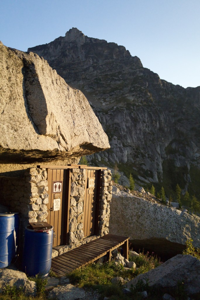 Once we got to the base of the scrambling/climbing section, we stowed our crampons and ice axes, and got ready for the ascent. There was a convenient alpine toilet situated here, which was great to see since human waste does quite a number on the environment. Must be a pain to empty though! Pigeon Spire features two false summits en route to the true summit, and the climbing wasn’t incredibly technical, which I enjoyed. Still, it was quite exposed, so Paul did a great job leading us and providing protection. It also could not have been a better day for climbing in the Rockies!