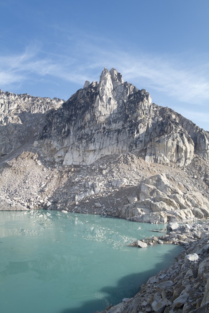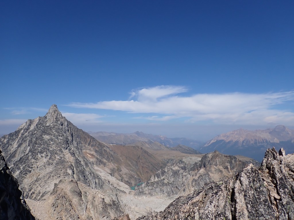 The next three days each featured an alpine rock objective. The first was Eastpost Spire, a fairly straightforward peak close to Appleby Dome. Eastpost, like many of the peaks/spires in the area, has multiple routes up; we elected to scramble across the south side, which would lead us to several pitches of climbing up the southeast ridge (5.6), and descend the Class 4 terrain down the northwest ridge, effectively traversing the peak. The hike up was pretty fun and involved navigating some scree along the south face.