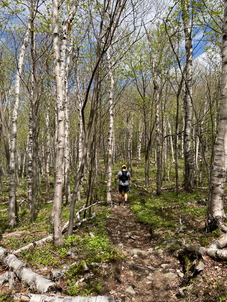 We took a quick breather at a lookout just before Bald Peak and enjoyed some great views and fairly exposed ridgeline even at lower elevations. Eventually we descended into the more deciduous forest and the trail became significantly more gentle, but we were too tired (OK it was really just me that was tired) to run much of the remainder of the hike.
