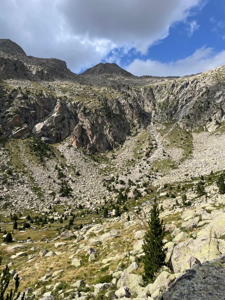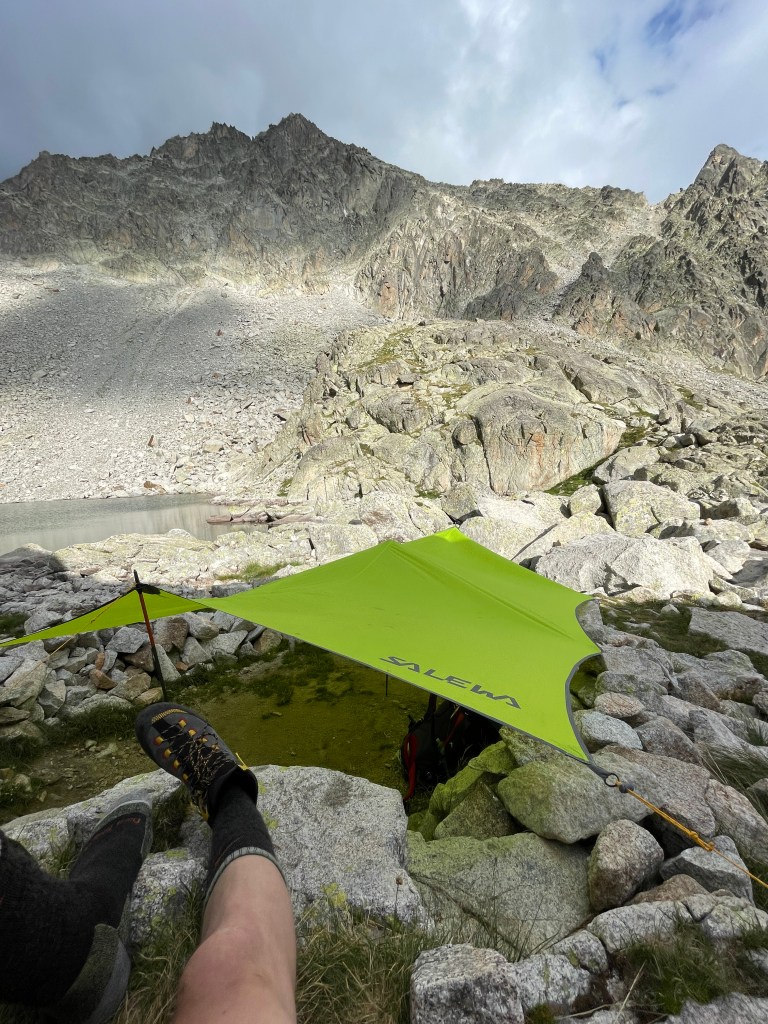 Upon arrival at the refuge, we began the roughly 2.5 kilometer hike to our camp, which was a bit lower down than the typical campsite location for Aneto attempts, as we would be taking a more unconventional, technical route. The hike started off pretty good but after an hour or so I really began to feel how out of shape I was, in addition to not having a strong left ankle. Nevertheless, we made it to our camp in just over 2 hours and Julien began setting up the tarp under which we would sleep. I was happy to take off my boots and plunge my foot and ankle in the cold water of the nearby lake. My ankle was sore but not swollen, which was a good sign as it was likely just fatigued due to not being used much over the last six weeks.