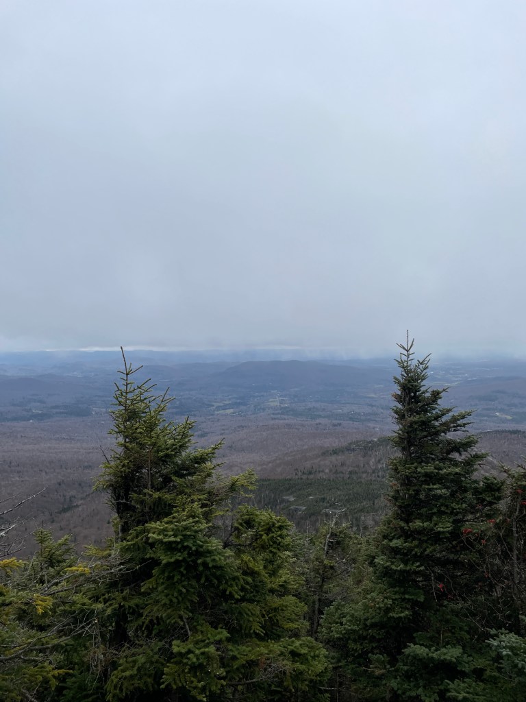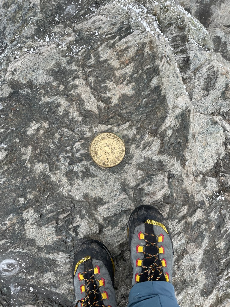 Despite pretty poor visibility up high, it was easy to stay on trail and I was able to make my way over to The Chin, marking my seventh U.S. state highpoint. I hung out at the top for a few mins to eat a wrap that I had prepared at the AirBNB, and chatted with a couple of friendly girls from Québec who were trail running through. It took about 2 hours and 20 minutes to reach the summit from the car.