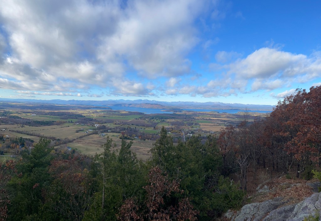 There are several trails in the park, as well as a road which one can drive to the top during the peak season, which ended at the end of October. The main hiking trail to the top involved a pretty solid incline which was a great workout. At the top, there was an area to get a great view of Lake Vermont and the Adirondacks. Was pretty cool seeing this area from afar.