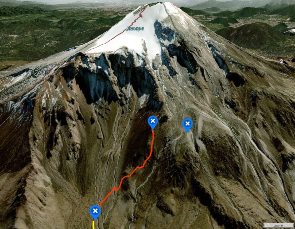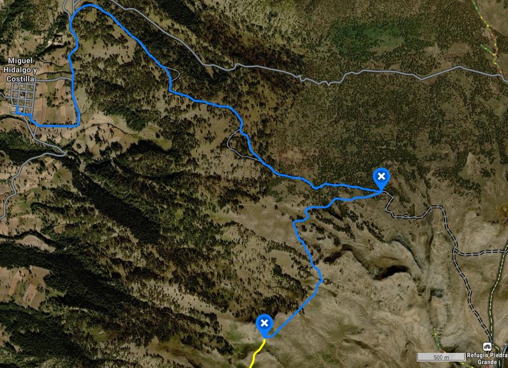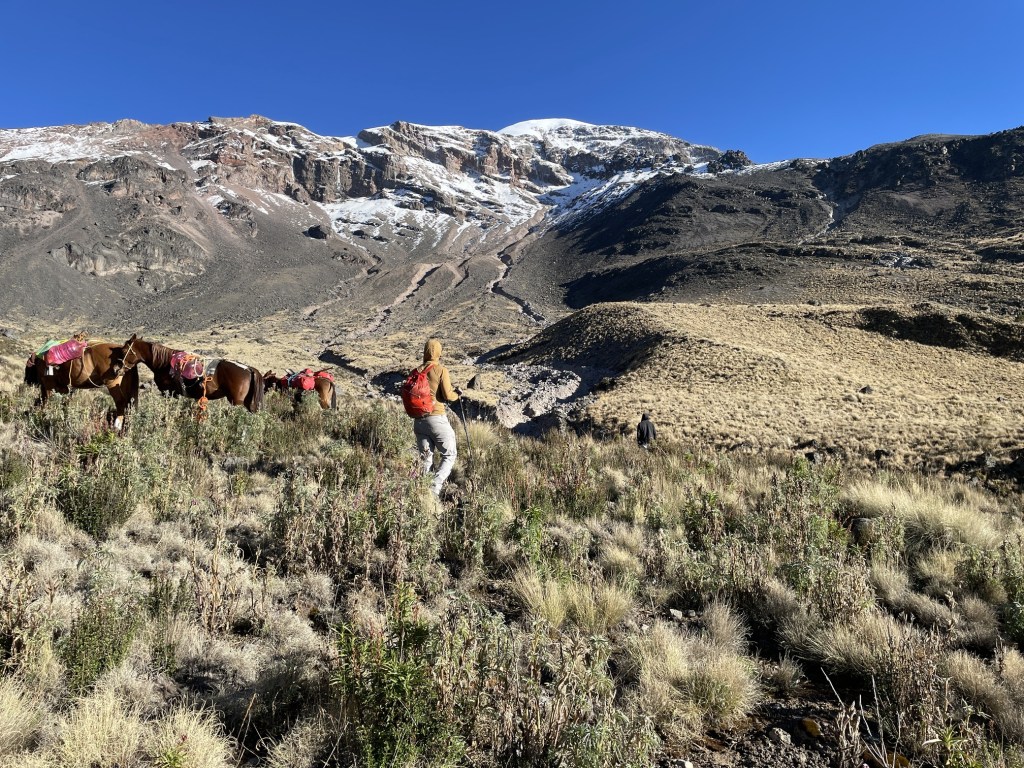 Our drive, contrary to Frederick’s expectations, started up the usual road taken to the Refugio Piedra Grande, the hut where most climbers begin the climb up the main route. Frederick expected us to take a more direct line up the west side of the mountain to our base camp. Upon returning to Canada and doing some research for this blog post, I happened upon a posted route on Wikilocs where some folks hiked from Hidalgo to the old hut on the Ruta Abrego, the Refugio Jose Llaca. Frederick mentioned that the hut was in ruins and it would be fun to try and find them on our expedition.