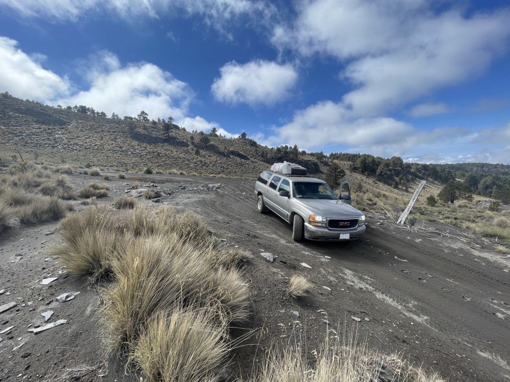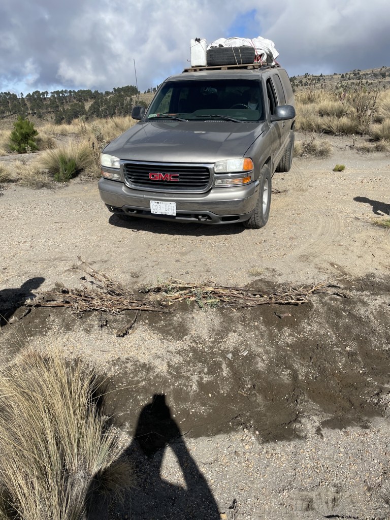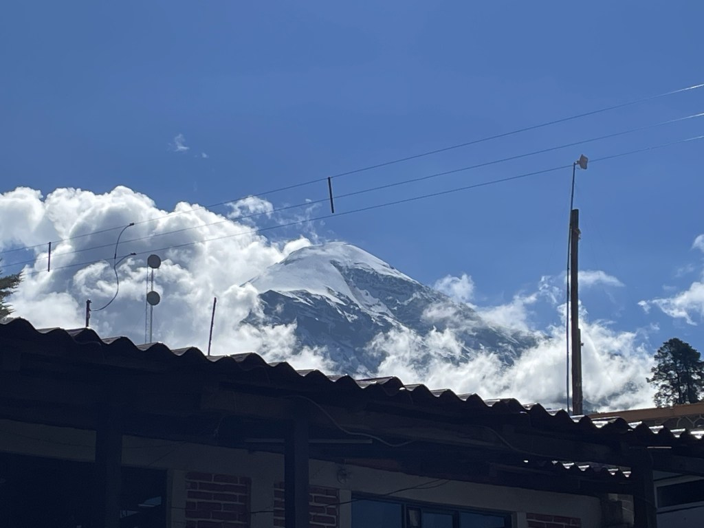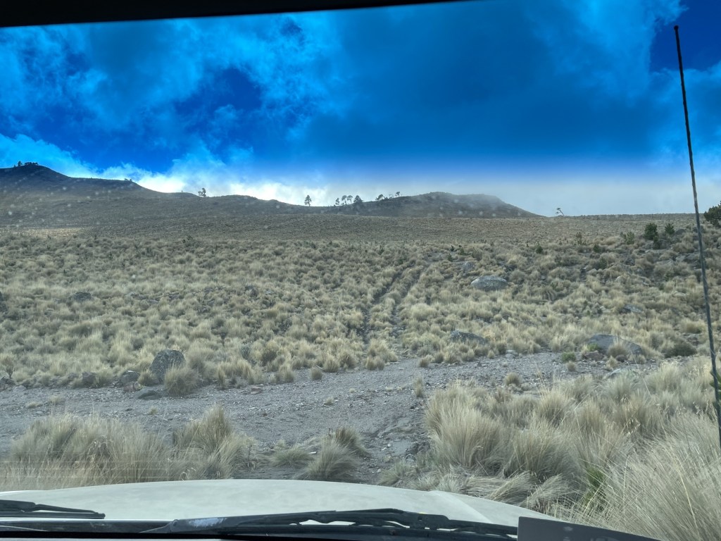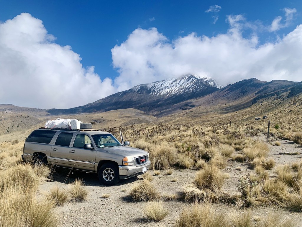 The following morning, after a night where we all got up frequently to use the bathroom (a result of the altitude and taking diamox for acclimatization), there was still some confusion on Rafael’s end as to what our plan was. Frederick eventually called his friend’s wife (who is Mexican) back in Canada on Whatsapp to speak with Rafael directly and things got hashed out. I also checked my O2 saturation in the morning and it was at 88%, which wasn’t too bad. After loading up Rafael’s 4×4 truck with our gear, as well as 8 ten-gallon jugs of water, a shovel and pickaxe (specifically requested by Frederick) as well as fuel for Frederick’s stove, which turned out to be car gasoline. Frederick had requested white gas or naphtha, but the translation for white gas in Spanish is “gasolina blanca”, hence the confusion. We were also finally able to get a decent view of Orizaba, as the clouds finally started to lift.