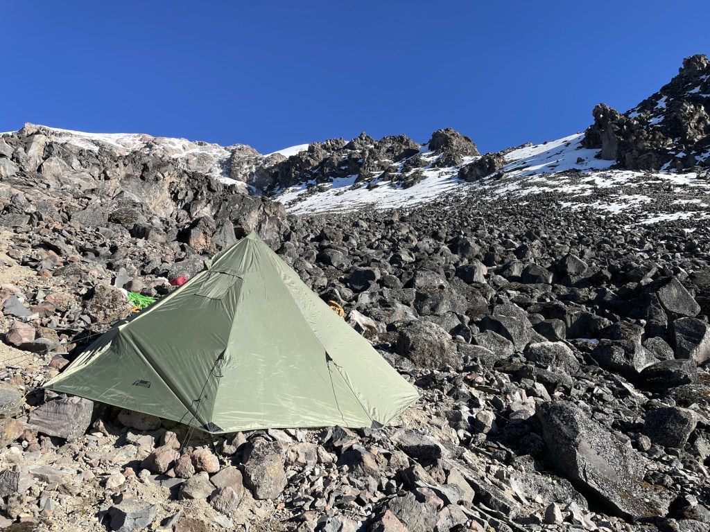 The next morning was very cold – it took some time for the sun to rise over the summit of the mountain but once it did, it became quite pleasant. I discovered that morning, thanks to Rafael, that avocado flesh is a pretty decent skin moisturizer. The skin on my hands was quite cracked due to exposure to cold temperatures and dry air. It was a pretty slow morning as the plan for the day was simply to hike up to our high camp, set up, and try and get some sleep before our summit attempt.
