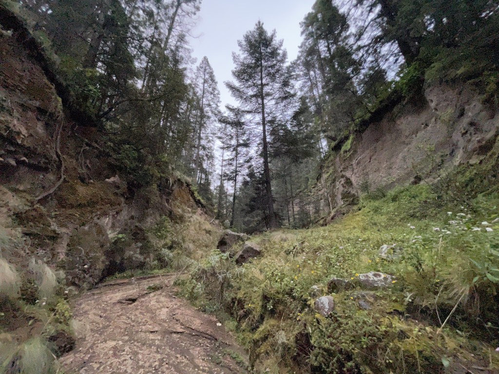 It took just under three hours in total to reach our site, and Luca and I spent quite a bit of time shifting dirt from one side of the platform to the other (the platform was originally quite slanted) and built up some rocks to make a wall. The setup of the tent (originally intended to be our bathroom tent, a smaller version of the kitchen tent at 8 feet in diameter) was a bit awkward as the platform was roughly 8 feet x 5 feet, but we managed to make it work using a ton of guylines as well as rocks to anchor the tent (stakes weren’t very useful in this rocky environment).