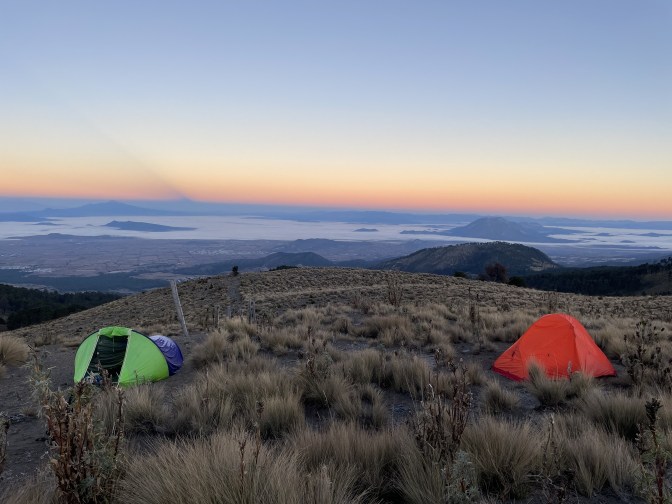 The descent was slow, especially for me as I was being careful with my ankle on the uneven terrain. We arrived at camp just after sunset and met Rafael, who had gone down to Hildago the night before and hiked back up to spend the next couple nights at base camp. Rafael had brought along white gas (finally), however the stove stopped working at this point (likely clogged by the gasoline) so Frederick spent quite some time trying to clean it out. The upside (once it was cleaned out) was that water boiled 3-4 times faster, it was ridiculous how much better the stove ran on white gas versus gasoline. Rafael also put in a lot of work to carve out a good (and level!) spot for Frederick’s tent, as Rafael would need to sleep in the kitchen tent the next couple of nights.