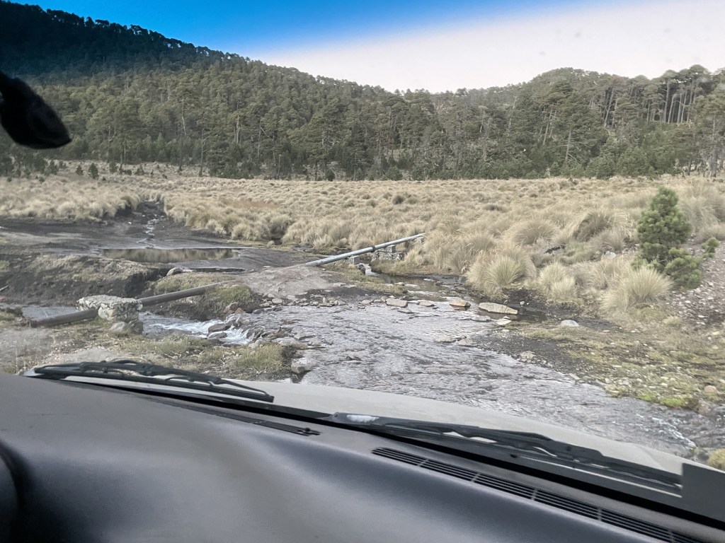 We were finally on the road to Mexico City around 4pm. The drive wasn’t too bad until we got to Mexico City, and there were some great views of Izta and Popo on the way. Once again, in Mexico City, Alejandro could not drive right up to the hotel, so Luca and I waited in the car while Frederick ran over to the hotel to collect the doorman and the dolly. We disposed of the remaining pine cones (the first one had been covertly left in Rafael’s vehicle) on the way, and after a dinner on the rooftop restaurant at the hotel, it was off to bed.