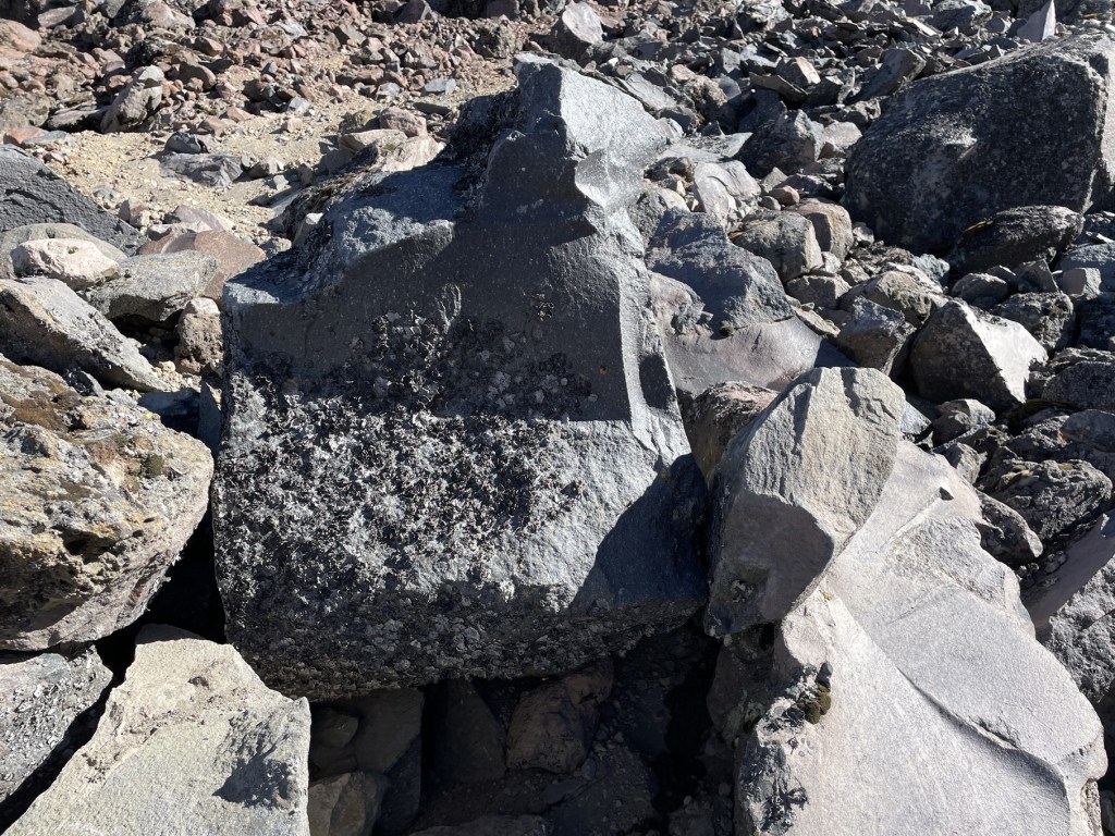 The Labyrinth was incredibly long and seemed to go on forever – it probably took longer to descend this section than ascend. Towards the end, I was overheating quite a lot and once we got to the end of the snow, I frantically removed the vast majority of my clothing (save hiking pants and underlying base layers) and chugged a ton of water to cool down. After a short break, we resumed our descent which was a bit on the slower end – it was a bit surprising to see how steep the lowest part of the trail was from above and in daylight. Frederick noted that the trail took a slightly different line than what he took in the past, due to the rockfall and landslides that had appeared to occur on climber’s left. Indeed, looking at OnX, the marked route is no longer possible as it went through this collapsed area. We took our time and finally made it back to the hut where we were greeted by Rafael. Hut to hut in just under 11 and a half hours, about 4 hours 45 minutes to descend from the summit.