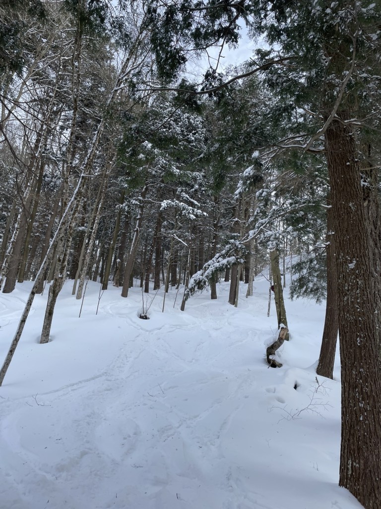 Around lunchtime, Cecile arrived and after lunch Jeff took a bunch of us on a tour to the area to the south which I had only been to once before at the Limberlost orientation event. The skiing in these areas was phenomenal – much more snow than last time and definitely the best runs of the day. Once the event concluded, I skied a few more laps at the ski hill, and ended up at the end with my biggest vertical gain on skis to date (1234 meters). Not bad for Ontario skiing!