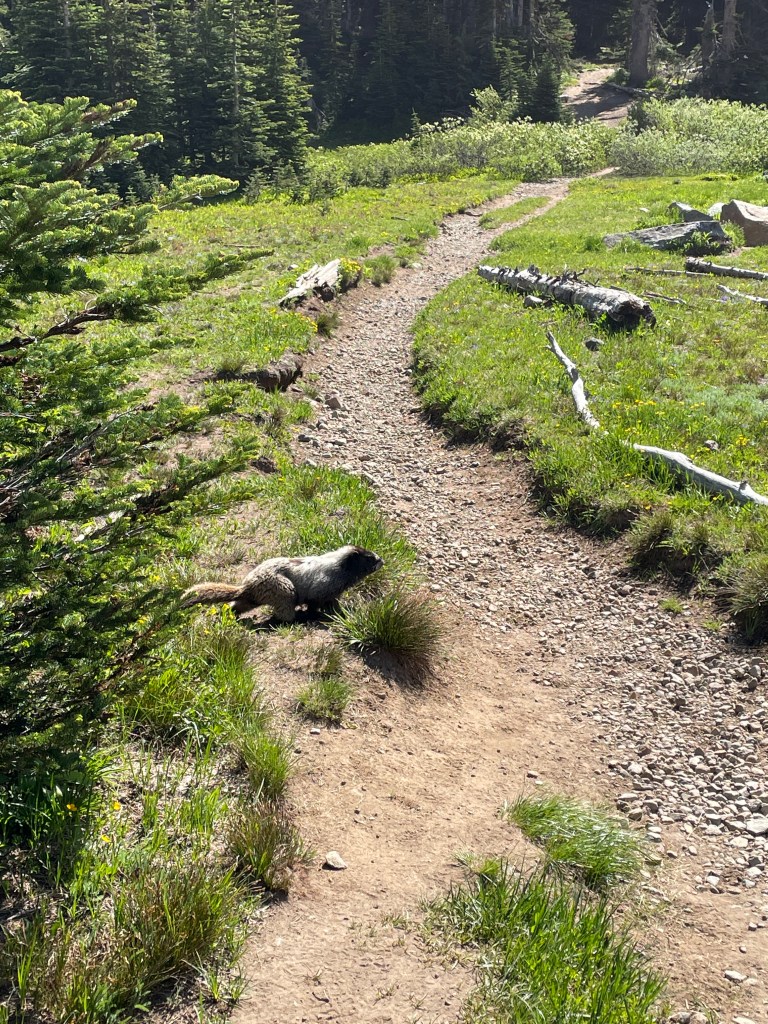 It was a bit of a slower start to the day as we were still waiting on Bryan. Luckily we had cell coverage at Glacier Basin so we were able to keep in touch and he was on track to grab the axe at REI, along with a few other things like hand sanitizer (I always forget this on trips). We got our packs packed as well as Bryan’s well in advance, as he was expecting to return to camp around 2pm and he wanted to leave immediately. While checking out the privy I ran into some bear poop and a bear tracks, confirming that mom and baby were around. I never saw them though, but did see quite a few marmots. I also spoke with a volunteer ranger (Alex) who suggested a few options in the event Bryan couldn’t make it back with enough time to get to our next camp at Camp Schurman.