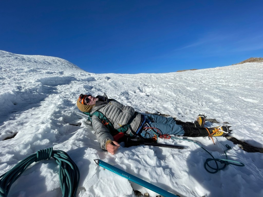 The good news is that the route conditions were looking great, though there was quite a bit of concern with the freezing level on the mountain. Ideally we would ascend through the night where the snow firms up, and try and descend as soon as possible to minimize our time spent on the rapidly warming snow. There was a report from the rangers that the morning would feature a freezing level around 14000 feet, which would suggest soft conditions to start, which would not be ideal. We thus planned to go to bed at 5pm, wake up at 11pm, and start for the summit at midnight. That afternoon we also spent some time reviewing anchors and self arrest (mainly for my benefit) and making sure we were good to go first thing in the morning.