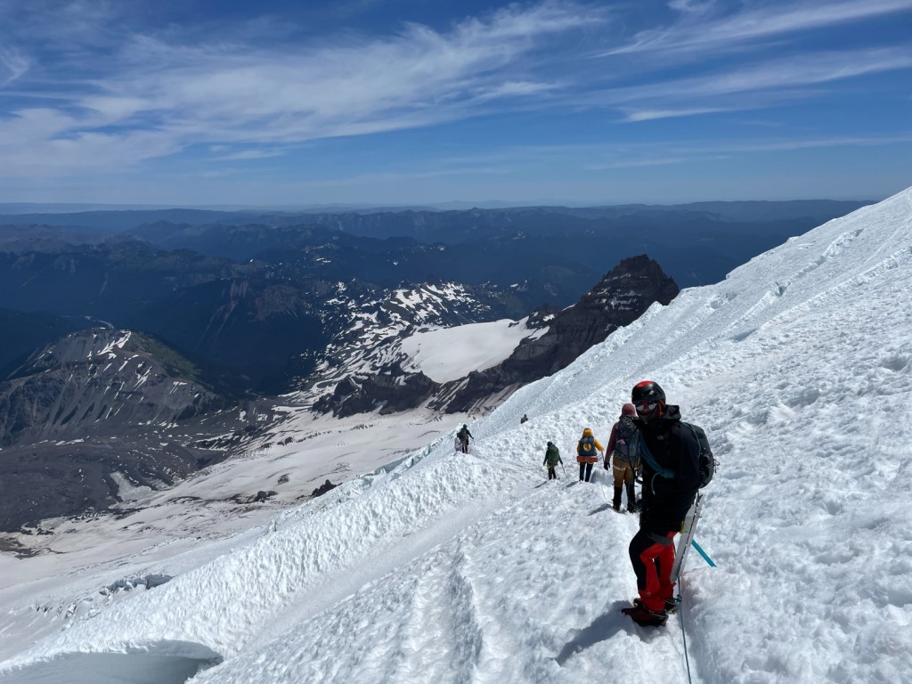 This was my first visit to the USA since the Alpine Club of Canada Toronto Section’s Adirondacks trip in February, a very long hiatus for me personally (a personal choice due to tensions between Canada and the USA). However, a trip to Rainier specifically was important as the Logan expedition leader, Bryan Thompson, was using this trip to evaluate several (eventually reduced to just one) expedition members at higher altitudes combined with technical glacier travel in preparation for the main expedition. So why didn’t we stay domestic? No such peak (that is also easily accessible) exists in Canada – only three (Mount Fairweather, Mount Quincy Adams, and Mount Waddington) 4000+ meter peaks are present outside the territories and they are all in the extremely remote northern parts of British Columbia. Coincidentally, Bryan had previously made two attempts at Waddington – both re-enactments – and was foiled both times by the treacherous approach and tricky climbing conditions. So obviously the best choice for an objective was Rainier. The trip was mainly for re-enactment team members, but I asked if I could join as Rainier is a peak I was keen on climbing; I have a fair amount of experience at higher elevations (Whitney, Humphreys, and Orizaba) in my resume but couldn’t pass up the opportunity to climb in the Cascades again (I had done some non technical climbs way back in the fall of 2019 in Oregon – that trip was one of the catalysts which got me into alpinism). It would also be a chance to practice a lot of technical skills which are always rusty given my current home location in Toronto.