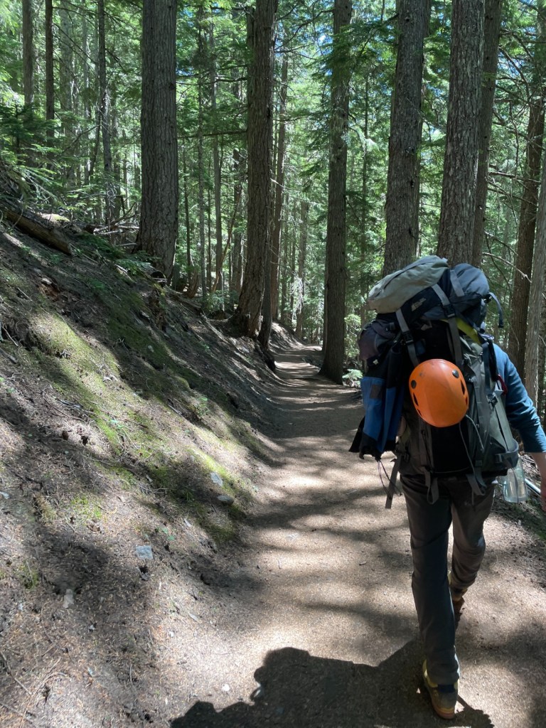 The first day involved hiking about 5 1/2 kilometers to Glacier Basin, a camping area situated at about 1780 meters and involving a straightforward approach which gained about 460 meters from the trailhead. This hike was surprisingly difficult owing to my pack weight, which had to be around 60 pounds. This included water and camp fuel, along with personal climbing and camping gear as well as food. My pack was pretty uncomfortable but realized partway through that I hadn’t tightened some straps properly, so it got better fit-wise from then on. We got some great views of the mountain along the way and it was a pretty mild, clear day. I also observed on this hike that Mehmet did not have his ice axe strapped to his pack like Bryan and I had. I thought nothing of it, assuming it was inside his pack. More on that later…