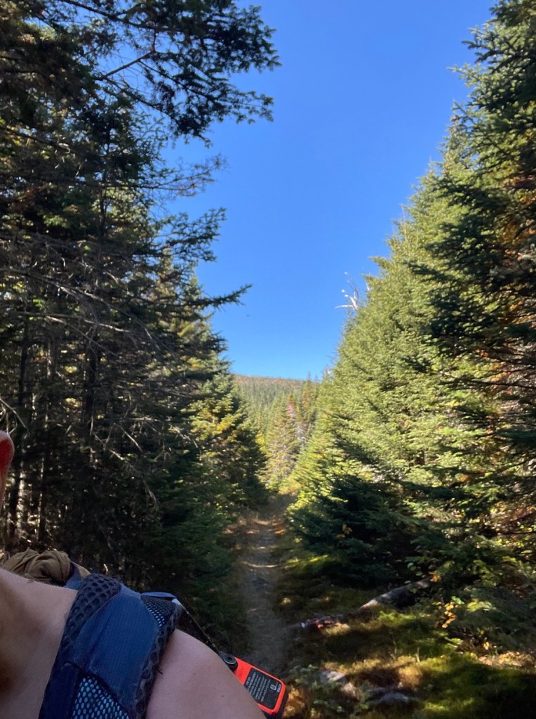 The trip over to Redington was pretty gnarly – I later found out this was the only Maine 4000 footer which does NOT have a maintained trail to the summit. It was definitely a classic Northeast herd path and felt like a bushwhack in some places. Redington also did not have a great view as a treed summit (4002 feet), and it took some time to find the summit sign. I later found out that when it was initially surveyed, it was listed as under 4000 feet, which might explain why the trails to it were herd paths.